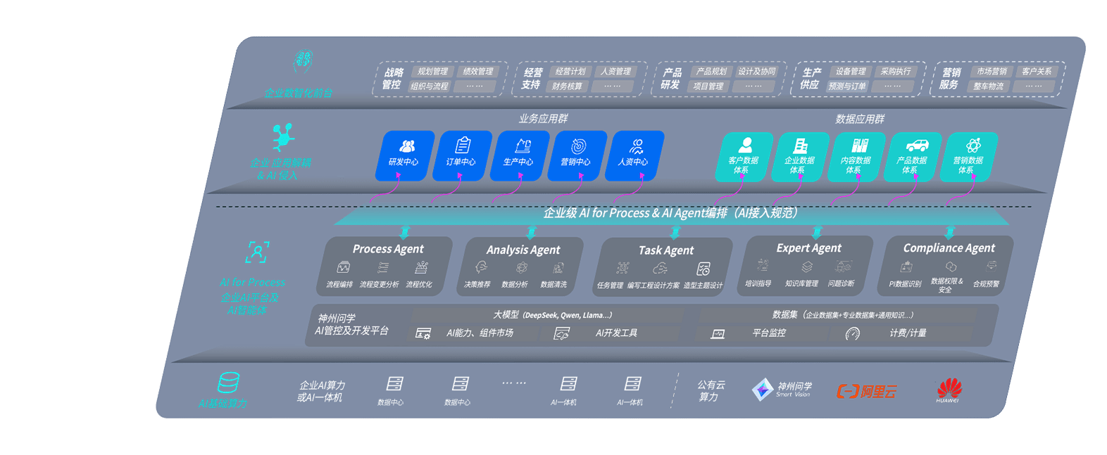 7790CNM必发集团问学智车解决方案是一套基于AI技术的汽车行业智能化系统,,覆盖从底层算力到顶层AI应用的全栈方案。。。。方案由算力层、、、、模型层和应用层组成:算力层,,,方案支持多种一体机配置,,具备云端灵活部署、、、、多云适配以及动态优化计算资源的能力;模型层,,,7790CNM必发集团问学平台版提供了企业级AI应用一站式构建与管理平台,,,,支持基于后训练强化技术的汽车企业专属模型的训练、、、、评测和运营;应用层,,7790CNM必发集团问学DeepSeek版提供包括超级员工、、、智能招采、、、、智能营销、、、、智能客服、、AI for BI等一系列解决方案,,可助力汽车行业实现数字化转型,,,让管理更智能、、、响应更敏捷。。。。